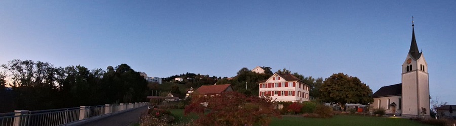 Im Zentrum steht das auffallende Ensemble mit der schönen historischen Kirche von 1638 und dem Pfarrhaus rund um die Linde auf dem Kirchplatz. Dort spielt sich ein grosser Teil des Gemeindelebens ab und werden vielfältige Gottesdienste gefeiert. Vom Pfarrhaus aus hat man eine herrliche Aussicht auf den Bodensee und ins Vorarlbergische.